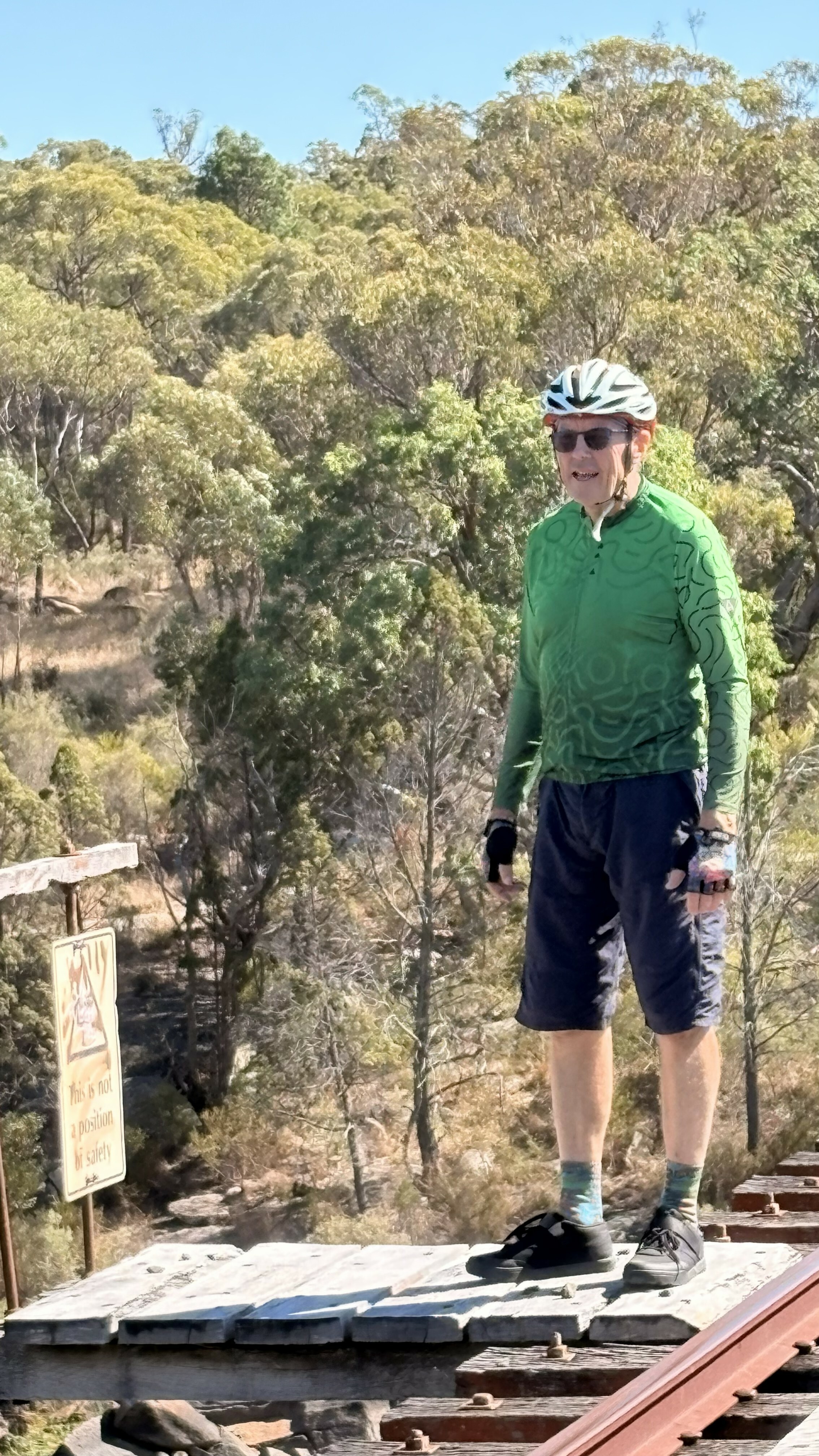 Red Bridge", an old railway bridge built in the mid 1880's. From the photo above you can see Trevor Bond surveying the track and bridge.